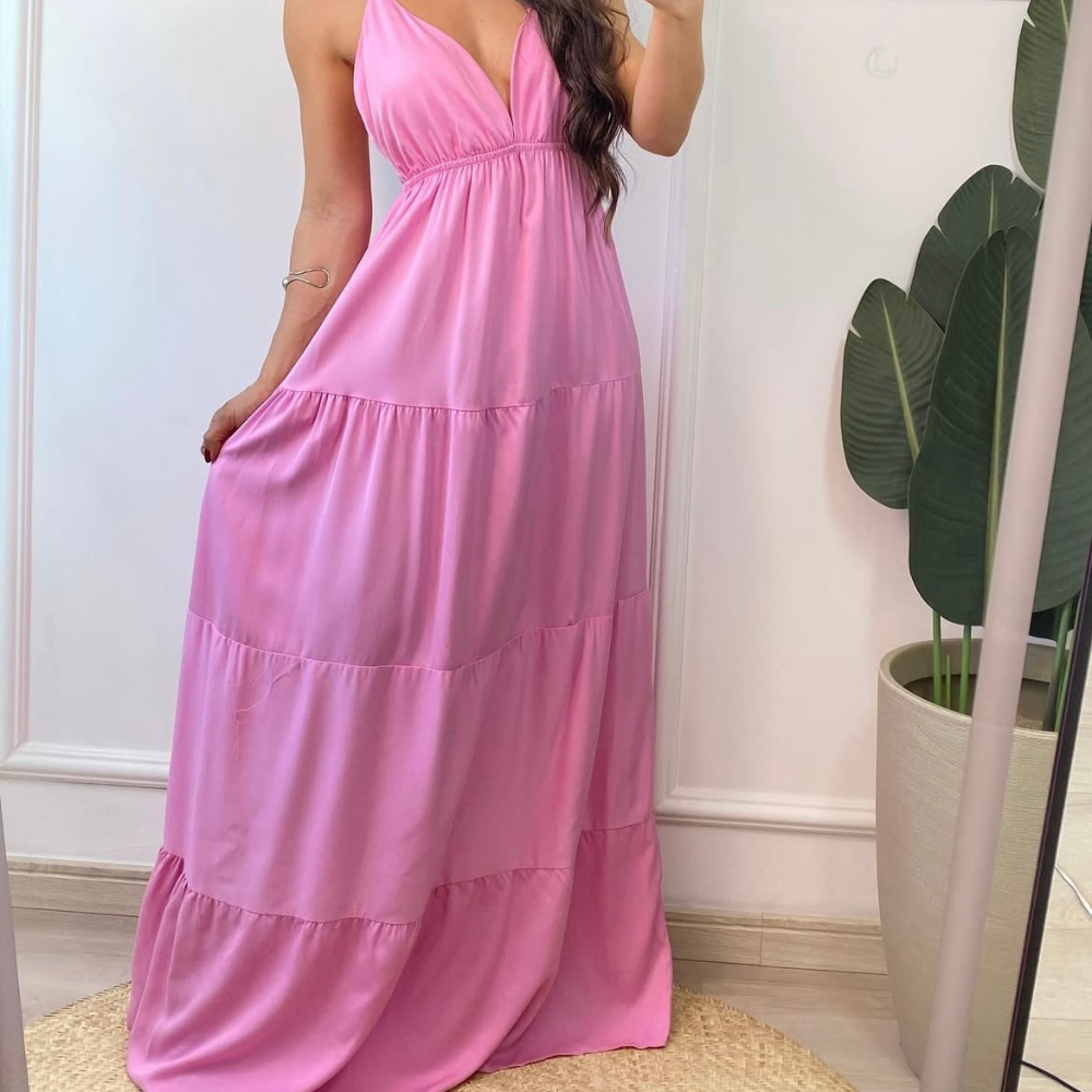 Um vestido longo e delicado, confeccionado em tecido leve que proporciona movimento e fluidez a cada passo. Com caimento elegante, valoriza a silhueta de forma sutil e sofisticada. O design romântico é realçado pelos detalhes sutis, tornando a peça perfeita para ocasiões especiais, jantares ou eventos ao ar livre. Um verdadeiro charme para quem busca delicadeza e elegância em um só look.